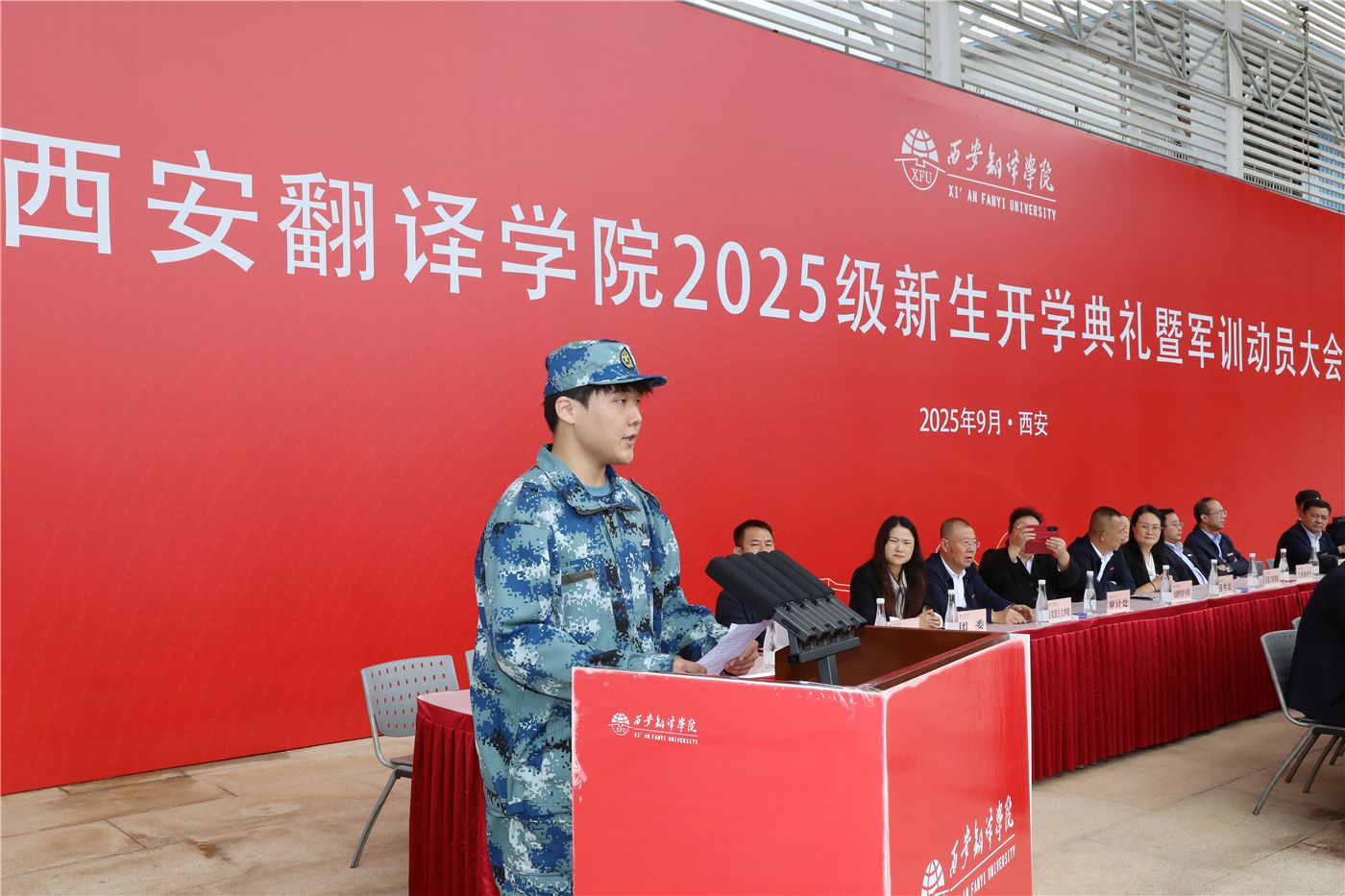 参训学生代表、国际商学院尤欢鑫在发言中表示,将以军训为起点,传承和发扬西译人“勤奋、拼搏、进取”的精神,在未来的学习生活中保持积极向上的态度,努力学习专业知识,全面提升自身素质,争取成为一名优秀的西译人。