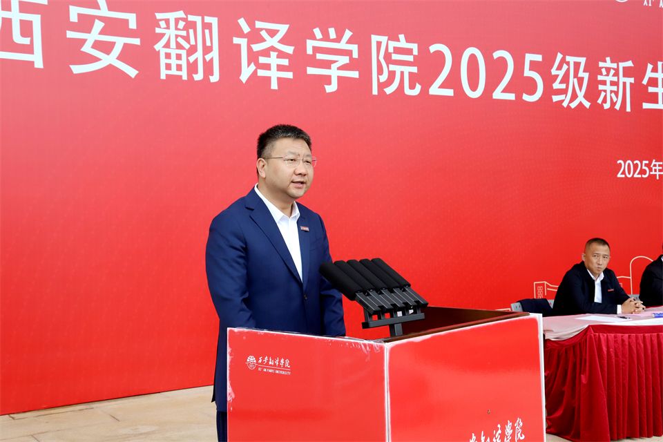 姚书志代表丁晶理事长及全校师生员工,向全体新生表示诚挚祝贺和热烈欢迎,并围绕学校发展与学生成长发表讲话。他介绍了西安翻译学院的办学历程,指出学校由民办教育拓荒者丁祖诒先生于1987年创建,是改革开放后西部第一所民办本科高校。建校至今,学校已为社会培养20余万名毕业生,享有“要学习,到西译”的社会美誉。近年来,学校连续三年跻身软科中国大学“最满意大学”前20强,并在“2025软科中国大学排名”中位列全国民办高校第9位,呈现出持续向上的发展态势。他表示,同学们选择西译,既是一份勇气,更是一种眼光。