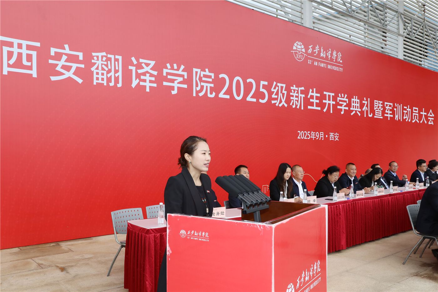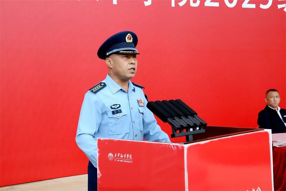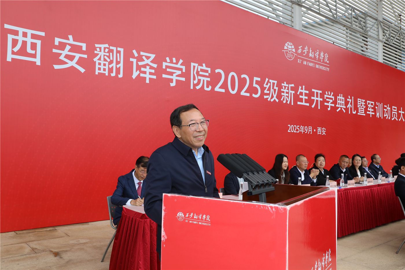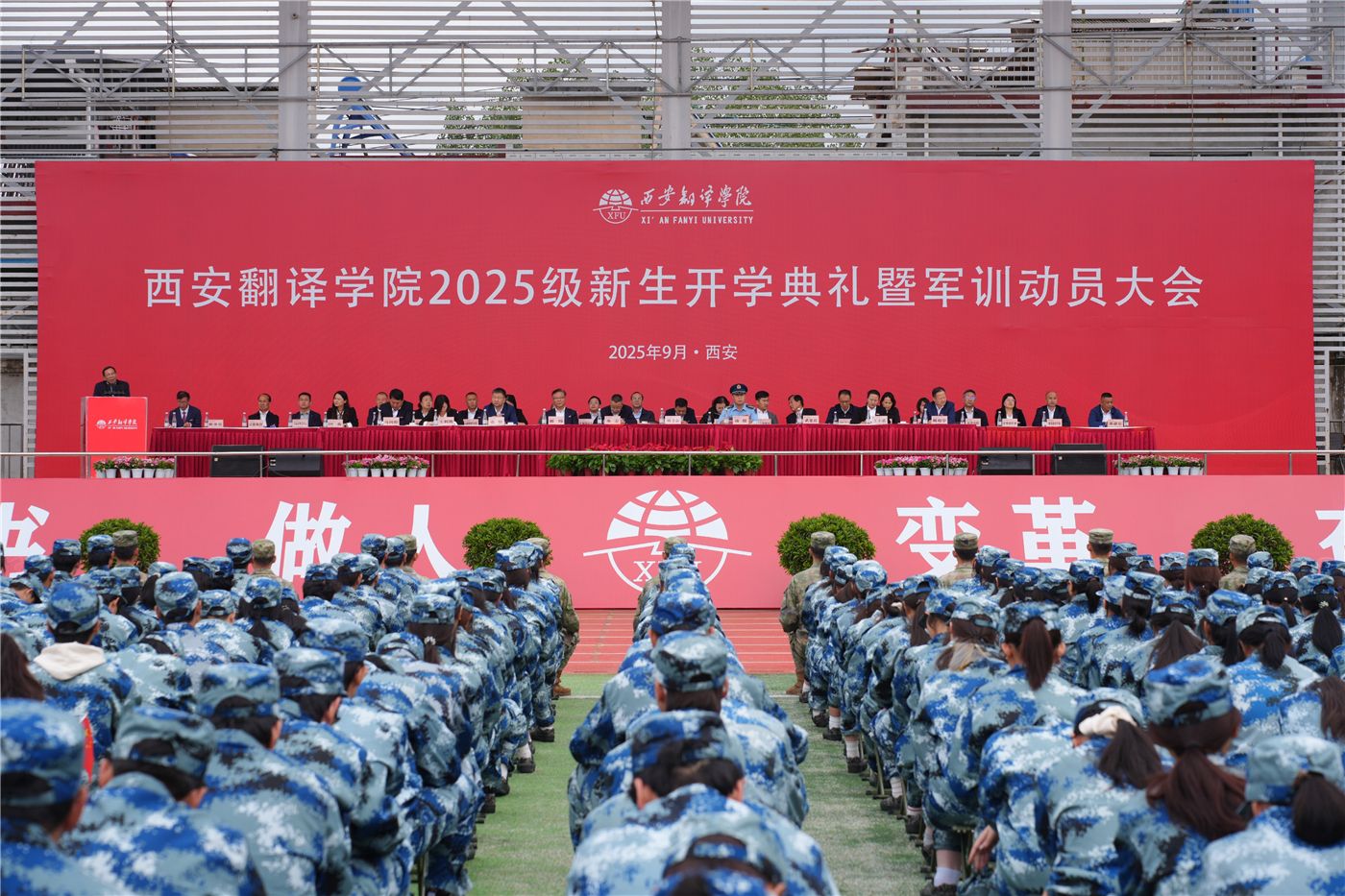 9月19日,西安翻译学院隆重举行2025级新生开学典礼暨军训动员大会。来自五湖四海的学子们怀揣梦想与期待齐聚西译,聆听师长寄语,正式开启大学崭新篇章。校长姚书志,党委书记、政府督导专员栾宏,空军工程大学汤煜大校,全体校领导以及军训旅全体教官出席大会。各二级学院主要领导,相关职能处室负责人、新生辅导员和全体参训新生参加。副校长武忠远主持开学典礼。