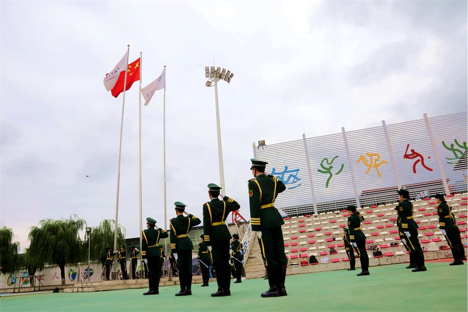 空军工程大学汤煜大校在讲话中表示,西安翻译学院办学特色鲜明、人才培养成效显著。空军工程大学作为承训院校承载着西译的信任与期盼,更担负着厚重的荣誉和责任。相信在两校共同努力下,一定能够圆满完成本次军训任务。军训旅旅长、副校长武忠远向军训旅授军旗。大会在《团结就是力量》的激昂歌声中胜利闭幕。