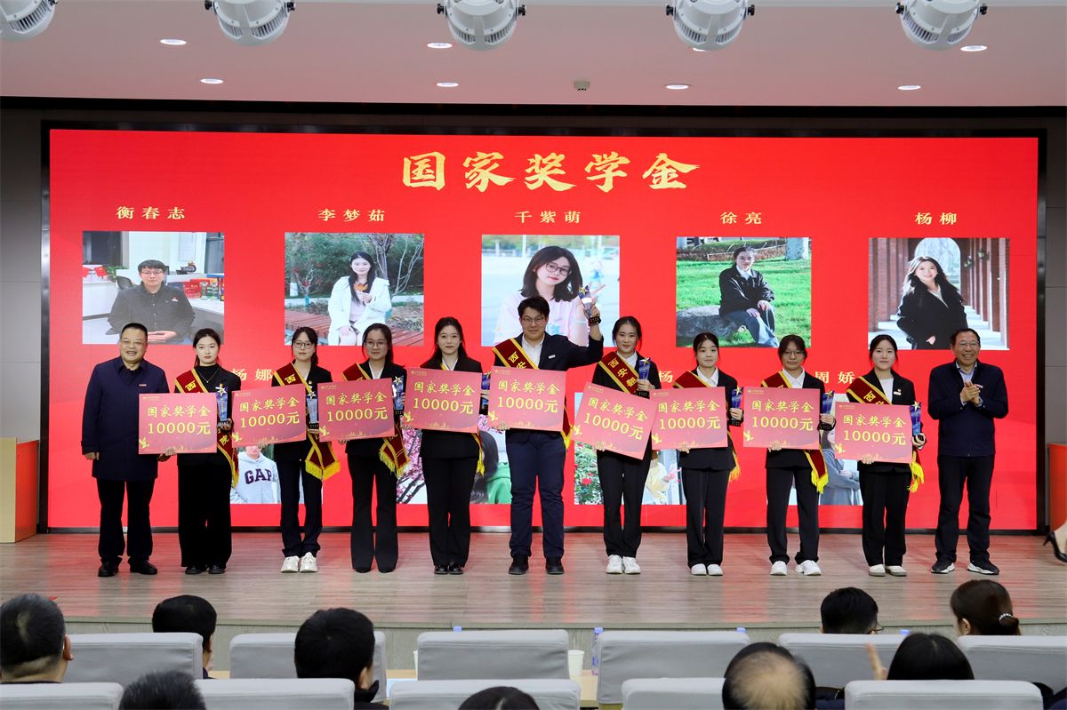 校领导为国家奖学金获得者颁发相关荣誉