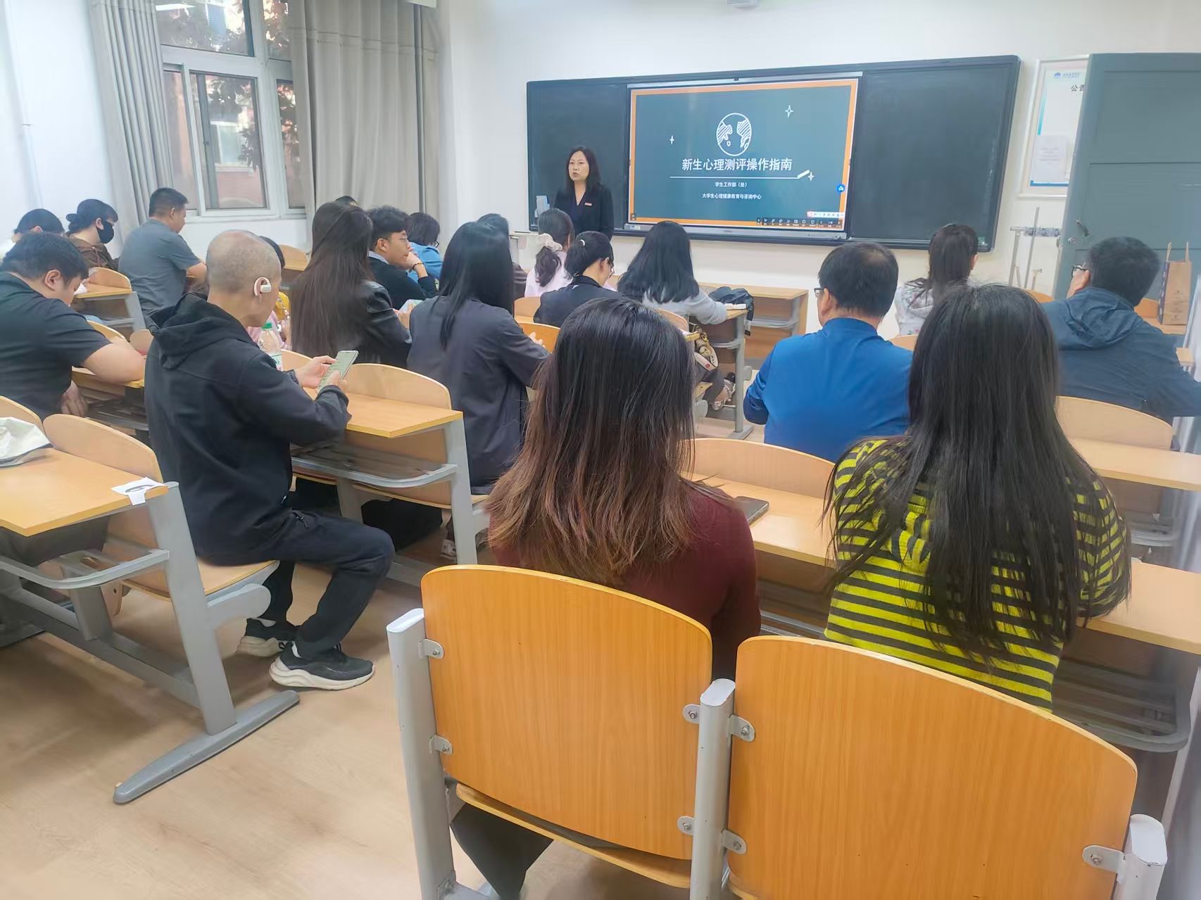 为确保心理筛查工作的科学性和规范性,在正式测评开始前,大学生心理健康教育与咨询中心专门组织了面向全体新生辅导员的操作培训会,确保筛查流程的规范性与数据采集的准确性。中心主任唐翠宁强调:“新生心理筛查是构建校园心理安全网络的重要一环,不仅是数据收集的过程,更是传递学校关怀、建立信任关系的重要契机。每一位参与人员都要以专业、细致、负责的态度,确保流程规范、引导得当,让新生在安全、受尊重的环境中完成测评。”唐翠宁进一步要求,参与工作的辅导员要准确把握指导语,密切关注学生状态,及时回应疑问,切实做好筛查过程中的支持与保障工作,真正实现“筛查一次,温暖一人”的工作目标。此次培训有效统一了工作标准,提升了团队协作效能,为筛查工作的顺利开展奠定了坚实基础。
