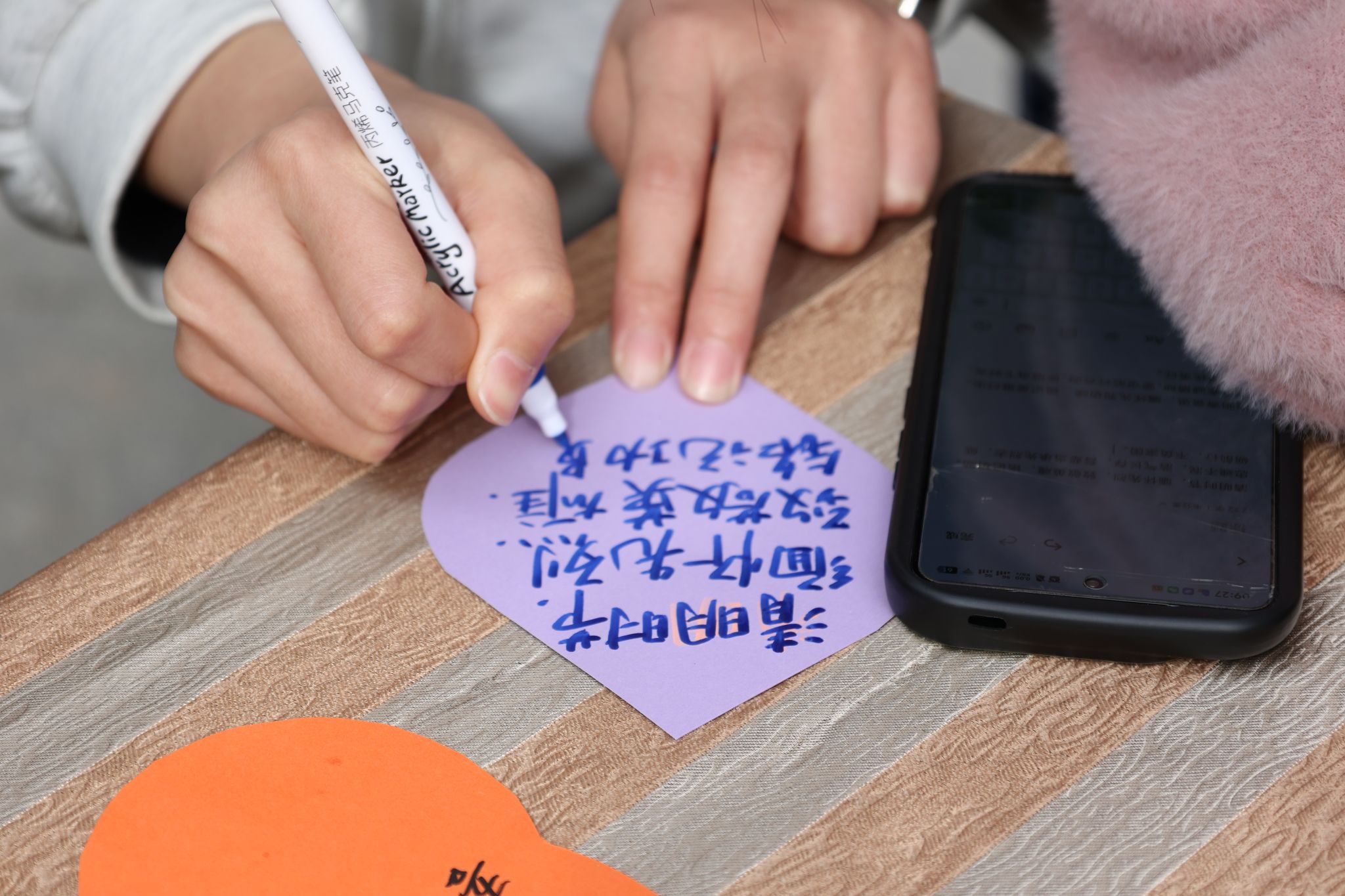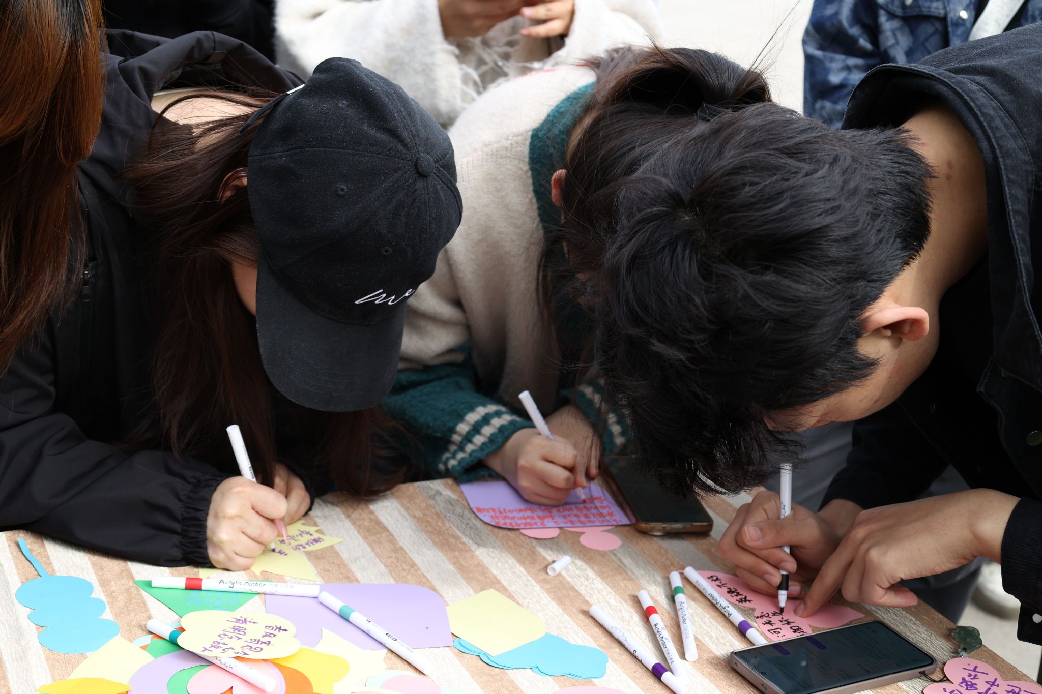 活动现场,学子们积极参与双寄语卡创作。一张清明追思卡,落笔皆是对先烈、先辈的缅怀敬意,更饱含对丁祖诒老院长的深切追思与感念,字字恳切,句句赤诚,将绵长的思念凝于笔端;一张自律成长卡,大家结合自身实际,写下关于青春奋进的个人目标,把对先辈与老院长的追思之心化为笃行成长之力,让自律成为青春最鲜明的底色。